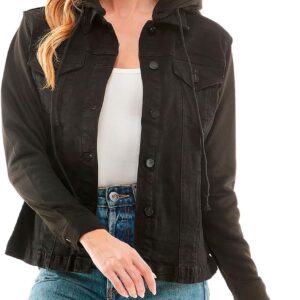 Amazing Ladies’ Denim Jacket with Fleece Hoodie – Presents for Women – Fashion Women Clothing – Light Washed, L