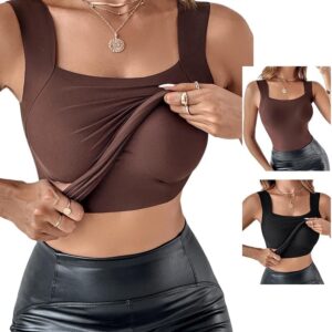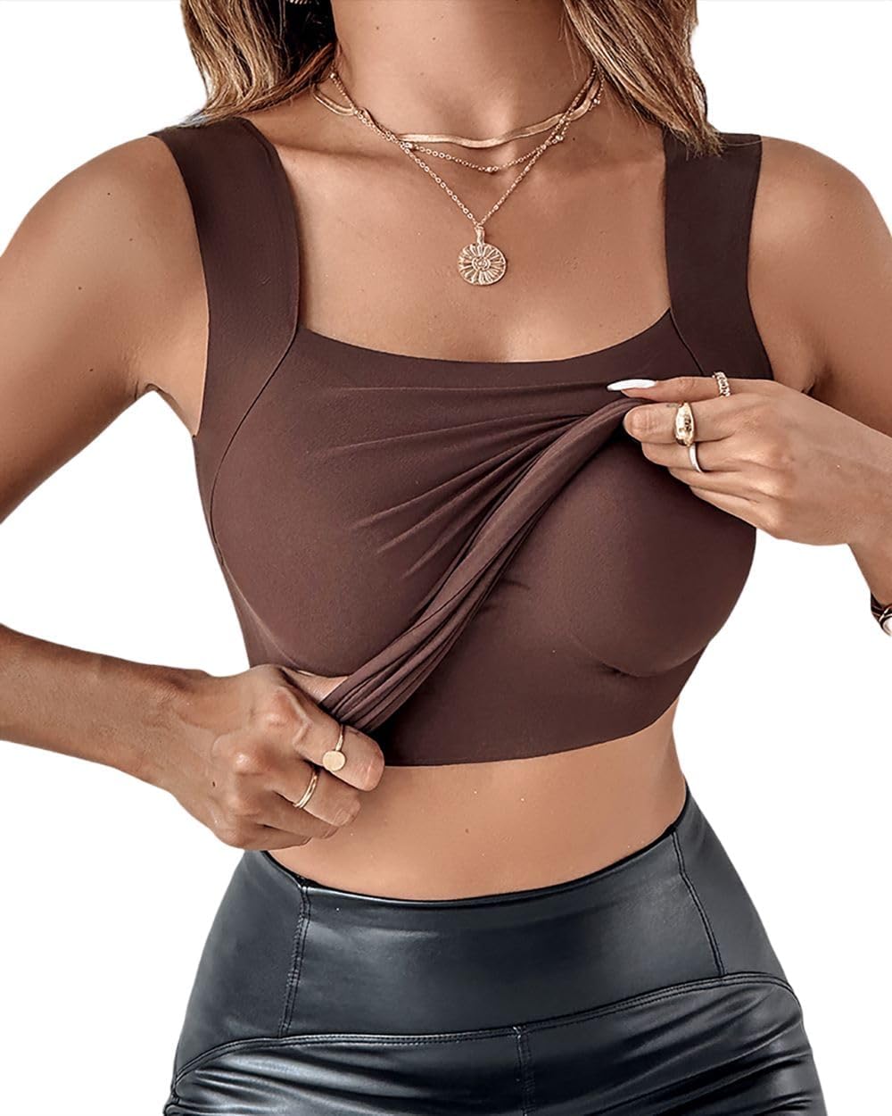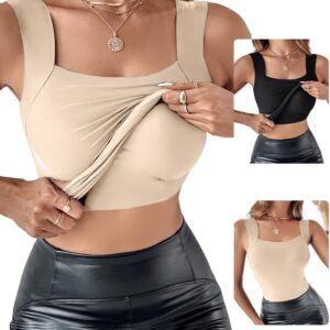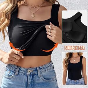CHICME Womens U Neck Shapewear Built-in Bra Tank High Strechy Sleeveless Slim Fit Tops Camisole Workout Tops quantity