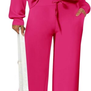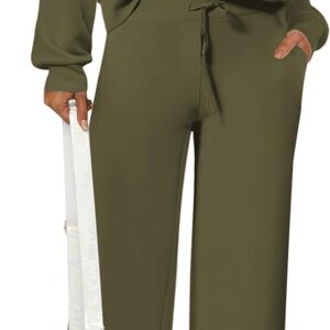 PRETTYGARDEN Women’s 2 Piece Outfits Casual Lapel Half Zip Sweatshirts And Wide Leg Pants Tracksuit Sets