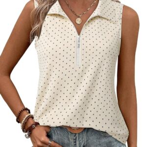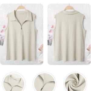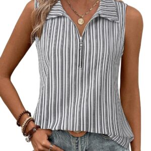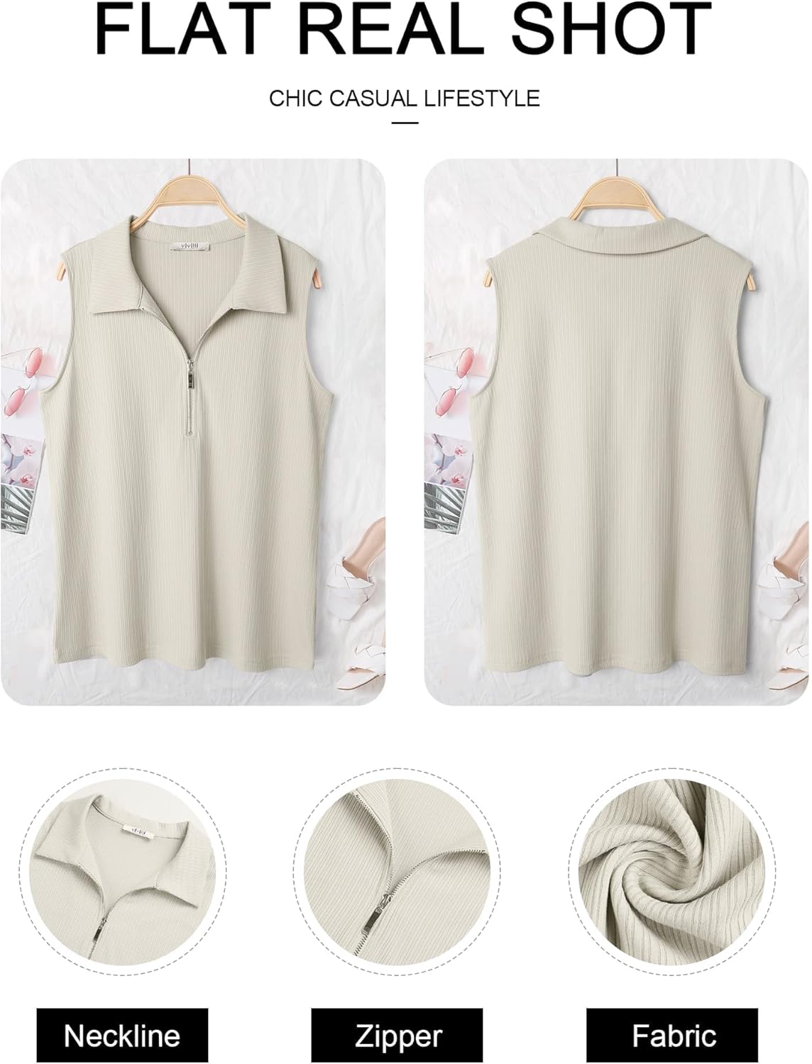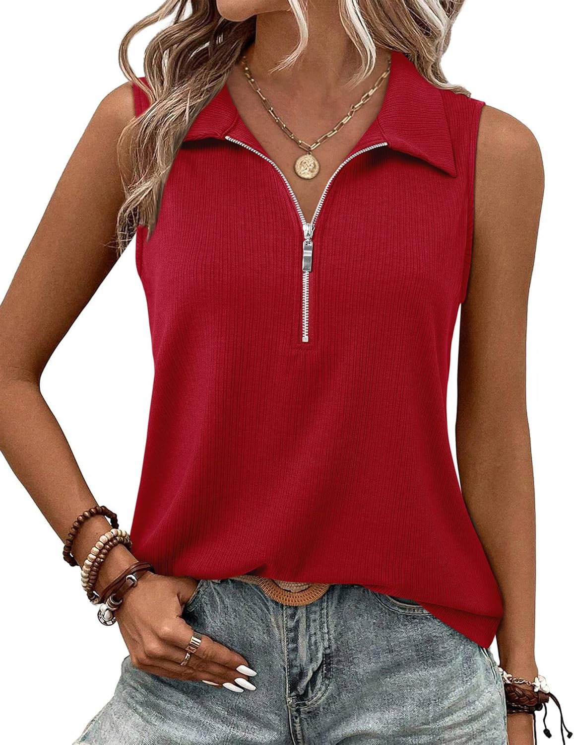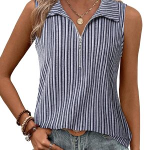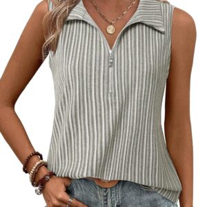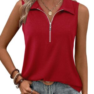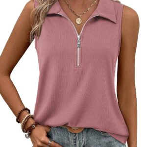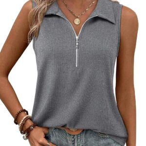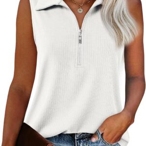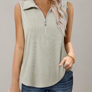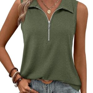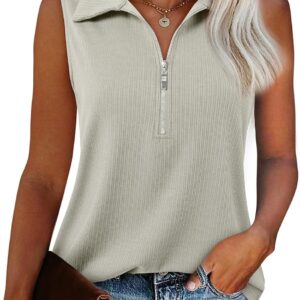 Vivilli Womens Ribbed Tank Top Zipper V Neck Dressy Casual Blouses Sleeveless Camisole Tops Work Tank Polo Shirts