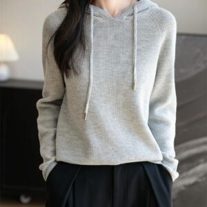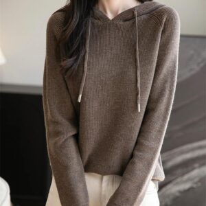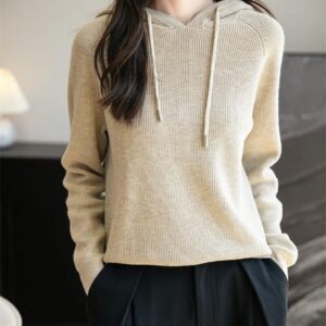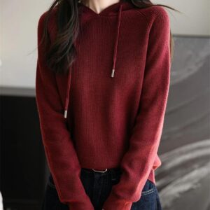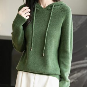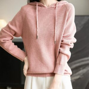 Woman Hooded Neck Sweater Summer:Pullover Knitted Solid Sweater