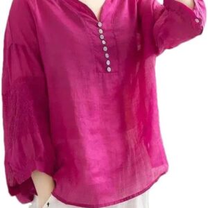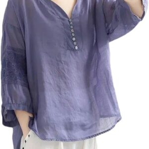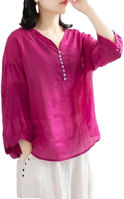 XZQYJKP Women’s V-Neck Button Loose Short Sleeve Casual T-Shirts Summer Solid Color Clothing Chinese Style