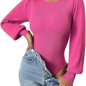 Features—Crewneck/Puff Long Sleeve/Rib Knit/Bodysuit Style