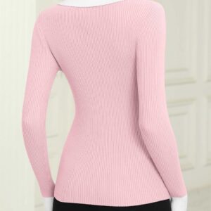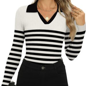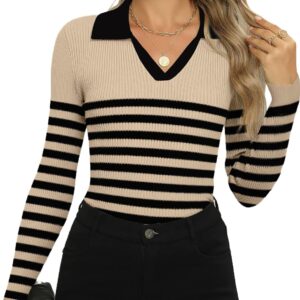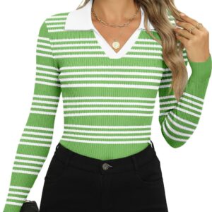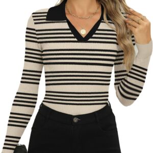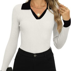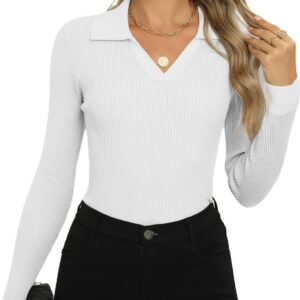 Womens Fall Sweater Tops Long Sleeve V Neck Collared Ribbed Knit Casual Shirts